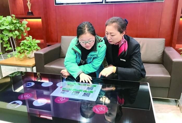 工行德州分行營業(yè)部原來一直在分行大樓二樓辦公,為方便客戶,他們將與二樓聯(lián)通的一樓西側(cè)的倉庫進(jìn)行了規(guī)劃裝修,今年1月,營業(yè)網(wǎng)點(diǎn)全新亮相。新網(wǎng)點(diǎn)按照客戶動(dòng)線設(shè)計(jì),分為自助服務(wù)區(qū)、智能服務(wù)區(qū)、現(xiàn)金服務(wù)區(qū)和理財(cái)服務(wù)區(qū)??蛻暨M(jìn)入網(wǎng)點(diǎn)后,可根據(jù)自己的業(yè)務(wù)需求選擇對(duì)應(yīng)的服務(wù)區(qū)域辦理業(yè)務(wù)。新網(wǎng)點(diǎn)在原有自助設(shè)備、智能設(shè)備的基礎(chǔ)上,增配了互動(dòng)營銷茶幾、金融數(shù)據(jù)專用顯示屏、配置了O2O體驗(yàn)終端、貴金屬全息展示柜、專用九連屏、立式海報(bào)機(jī)、互動(dòng)營銷終端、零幣自動(dòng)兌換機(jī)。同時(shí),專門安裝了一臺(tái)征信查詢機(jī)。